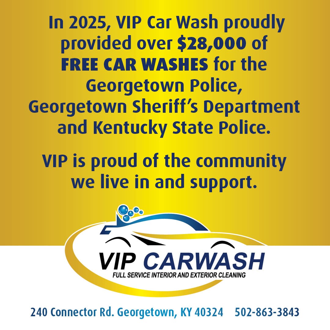 n 2025, VIP Car Wash proudly provided over $28,000 of Free Car Washes for the Georgetown Police, Georgetown Sheriff’s Department and Kentucky State Police. VIP is proud of the community we live in and support.